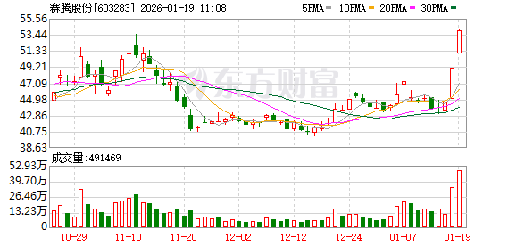 数据宝统计,截至10:14,赛腾股份成交额19.34亿元,创2024年11月13日以来新高。最新股价上涨9.99%,换手率13.47%。上一交易日该股全天成交额为16.18亿元。